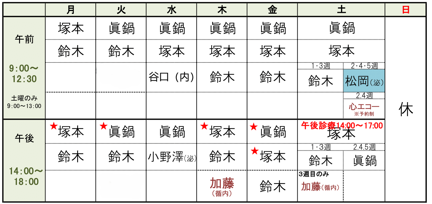 診察日は月により不定期です。来院前に必ず診察日をご確認ください。